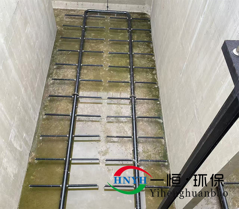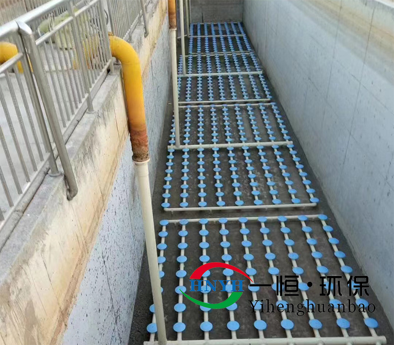 该曝气器工作原理为:压缩空气经主管道分配至支管,气流冲击硅橡胶膜片产生直径1mm的密集气泡,使氧气均匀扩散至生物陶粒滤料层。曝气口采用凹凸结构设计,具备抗堵塞与耐滤料堆压特性,运行过程中不受滤池高度、温差及滤料空隙率影响。技术参数显示氧利用率≥32%,阻力损失≤250mmH2O,单孔曝气量0.2-0.45m3/h,安装密度达36-49个/m2 。停止供气时膜片通过自密封机制闭合,能有效防止污水倒灌。